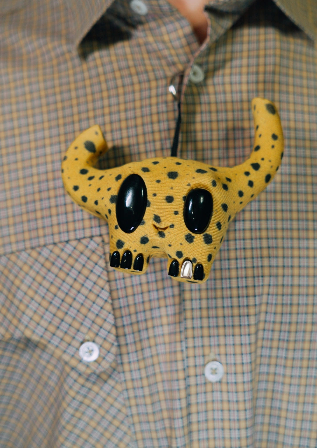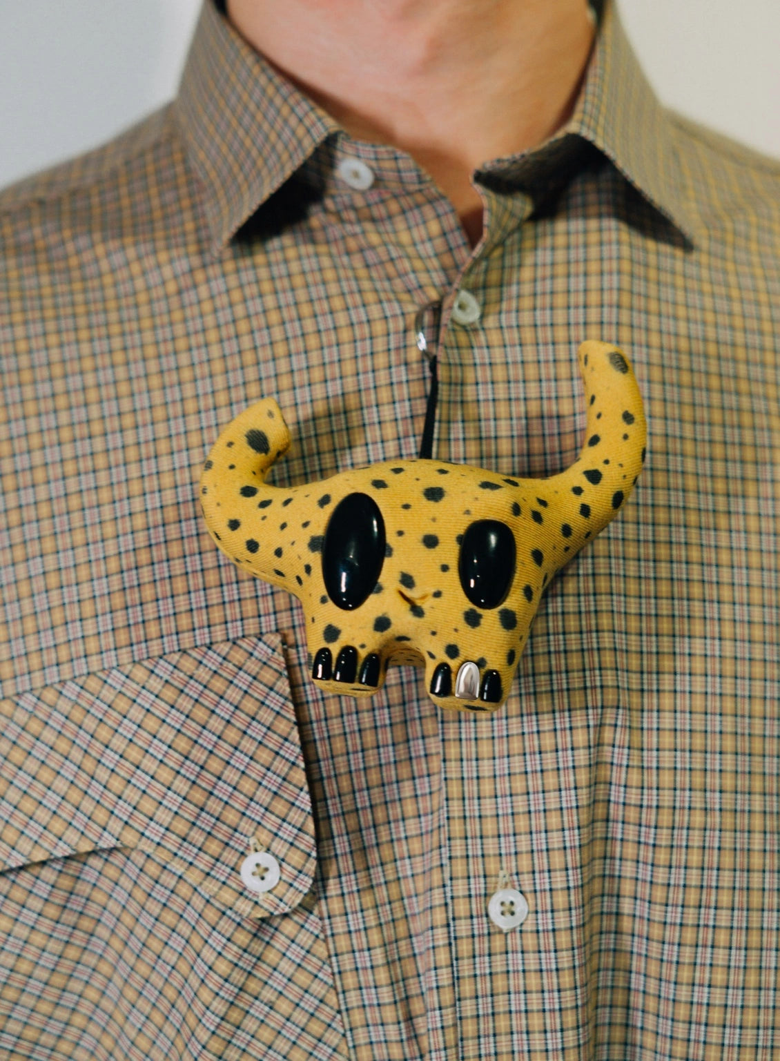 Realizzato interamente in resina e assemblato a mano, con applicazioni di tessuto elastico stampato e dettagli rifiniti manualmente.