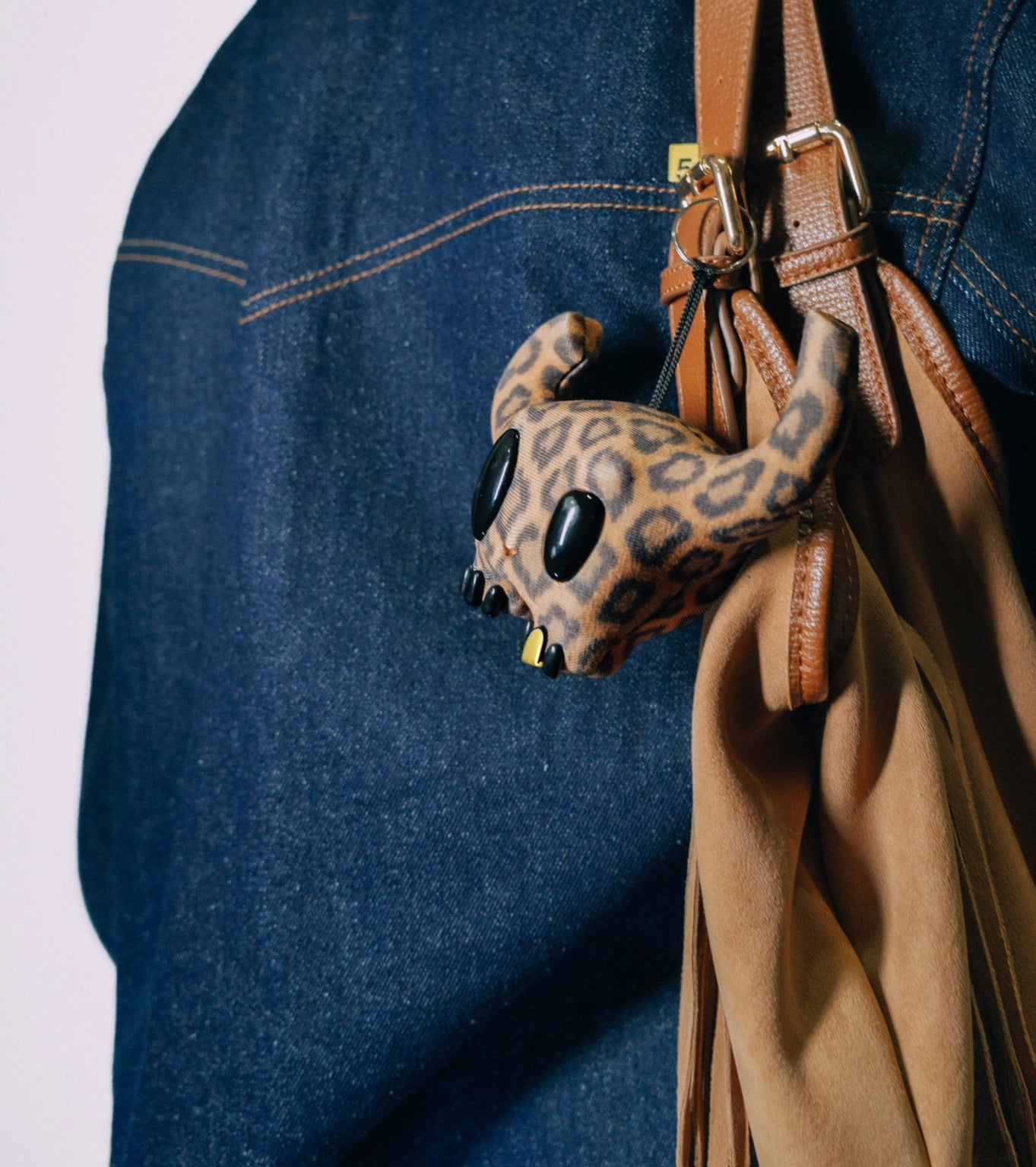 Realizzato interamente in resina e assemblato a mano, con applicazioni di tessuto elastico stampato e dettagli rifiniti manualmente.